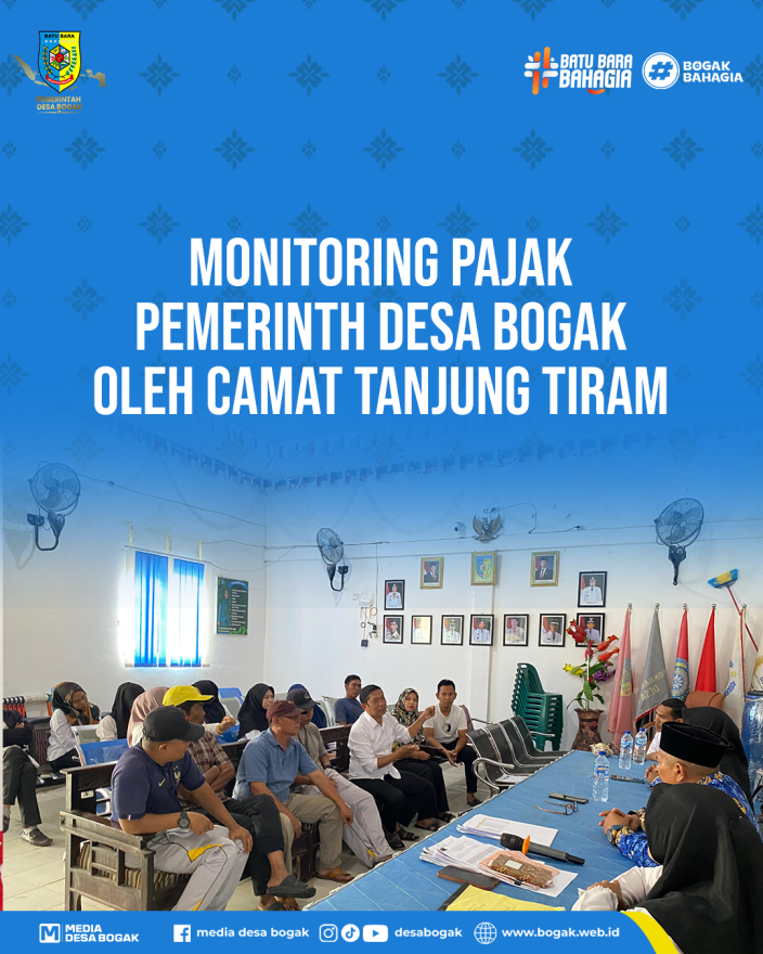 Hi Bogakers! Pada hari Rabu, 1 Oktober 2025, Pemerintah Desa Bogak mendapat kunjungan dari Camat Tanjung Tiram dalam rangka monitoring pajak desa. Kegiatan ini dilakukan untuk memastikan pelaksanaan administrasi pajak berjalan sesuai aturan serta meningkatkan kesadaran masyarakat dalam memenuhi kewajiban perpajakan.