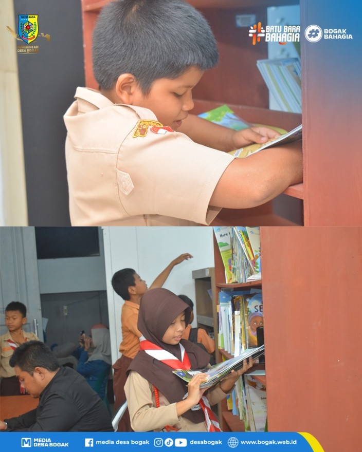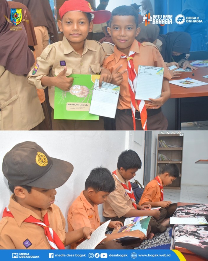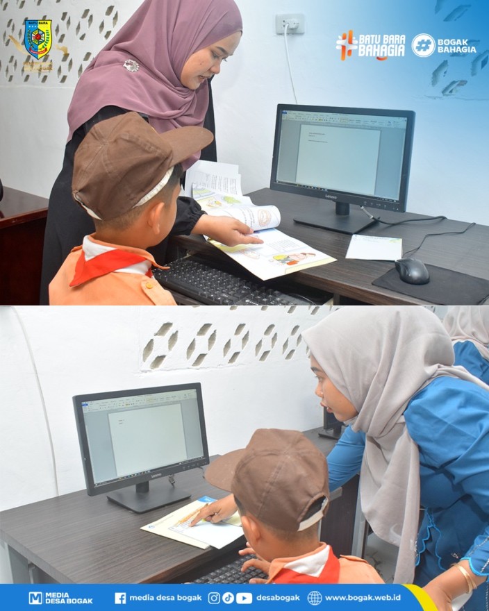 Hi Bogakers! Jum'at 24 Oktober 2025 Pemerintah Desa Bogak, Kecamatan Tanjung Tiram, terus mendorong semangat belajar anak-anak melalui Program Perpustakaan Digital Desa Bogak. Kepala Desa Bogak, Fazzary Akbar, S.E., menyampaikan bahwa kegiatan ini merupakan langkah nyata dalam menumbuhkan kecintaan membaca sejak dini. “Literasi adalah kunci kemajuan bangsa,” ujarnya. Program ini juga menjadi upaya menciptakan suasana belajar yang menyenangkan dan interaktif bagi anak-anak di Desa Bogak.