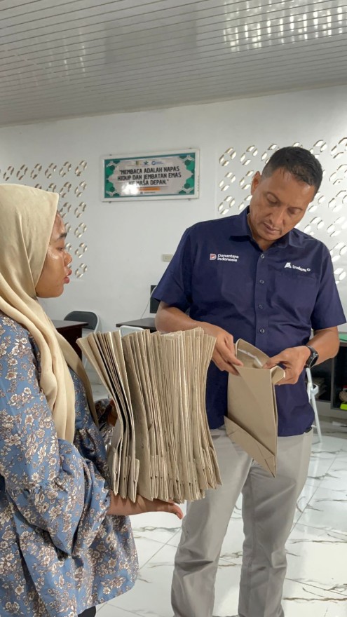 KUNJUNGAN PIHAK INALUM KE BANK SAMPAH DESA BOGAK DALAM RANGKA PROSES PENGELOAAN SAMPAH KERTAS