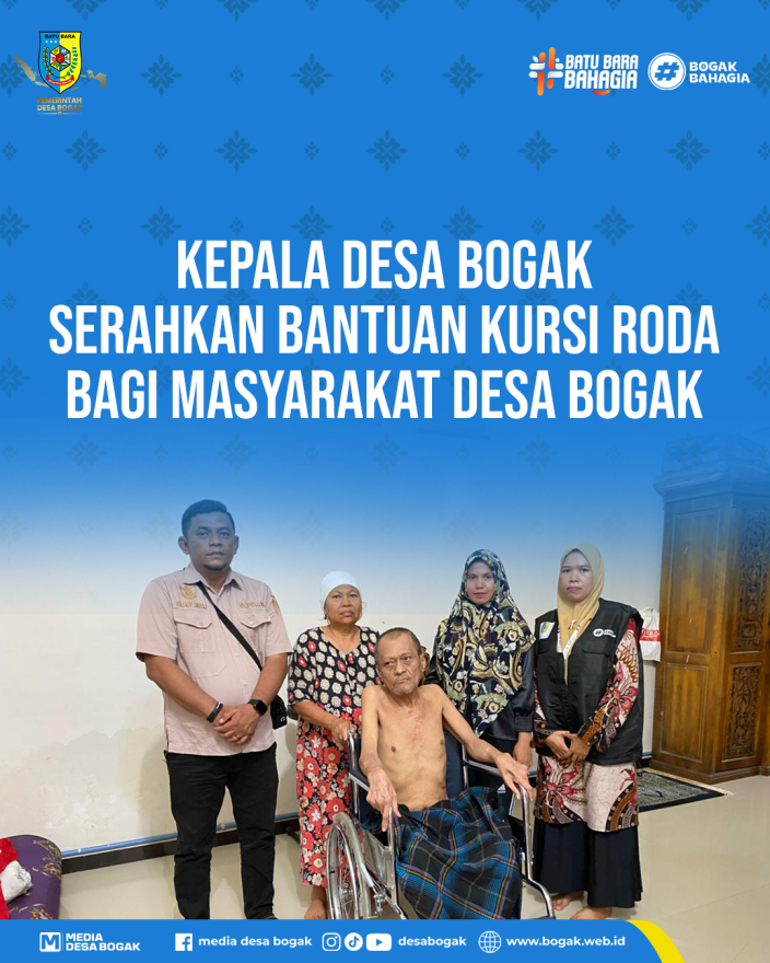 Hi Bogakers! Jum'at 19 September 2025 Pemerintah Desa Bogak menyalurkan bantuan untuk penyandang disabilitas sebagai wujud kepedulian sosial dan perhatian terhadap warga yang membutuhkan. Bantuan ini diharapkan dapat meringankan beban sekaligus memberikan motivasi agar para penerima tetap semangat menjalani aktivitas sehari-hari.